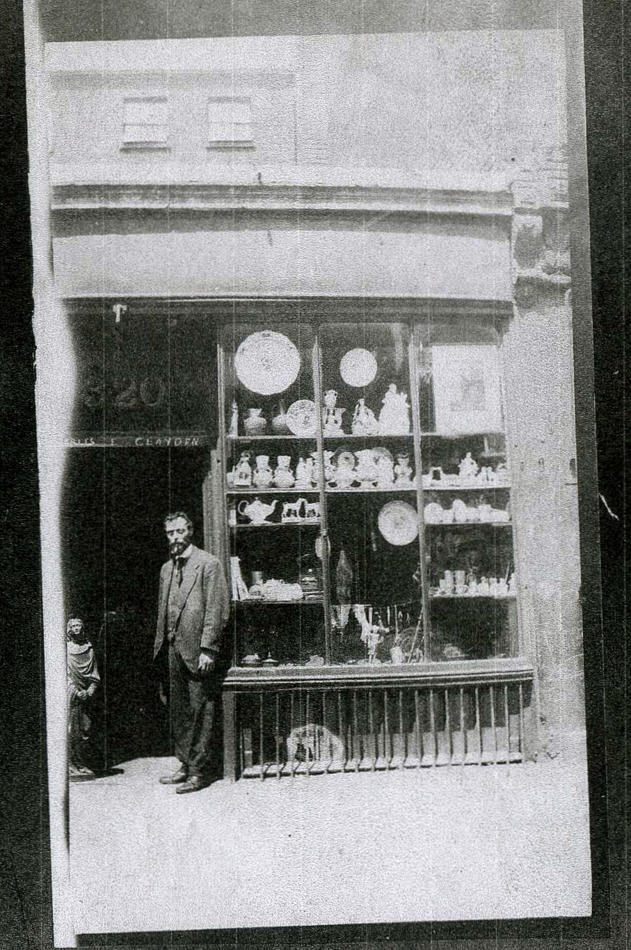 Jason West sent us some fascinating information and detail on his great grandfather, Charles Clayden, an antique dealer trading in London between 1919 and 1926. Here is Charles Clayden (below) in the entrance to his antique shop at 320 Euston Road, London – thank you again to Jason for also emailing us this photograph.