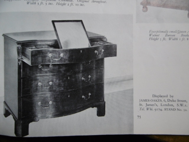 My Great Uncle and Aunt were James Oakes and Amy Oakes. Uncle served in World War1 with the South Staffordshire Regiment, he was a skilled clock maker and in his house he had a Year Clock, a Month clock and an 8 day clock, all made by him. He was keen on engineering and always used to have a Buggatti car. He had premises next to the Aolian Hall in Bond Street, opposite Sothebys, but moved to Bury St St James’s because of the noise from the musicians. After World War II , he moved to Duke Street, St James’s. (Here’s an advertisement by James Oakes, in the Grosvenor House Antiques Fair Handbook, 1950).