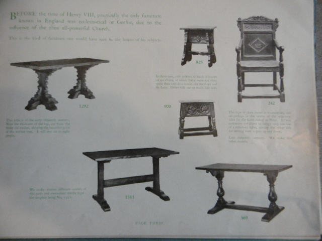 The catalogue is ordered chronologically, with ‘Tudor’ oak furniture in the opening pages, and includes reproductions of virtually every kind of antique furniture that was fashionable in the period.