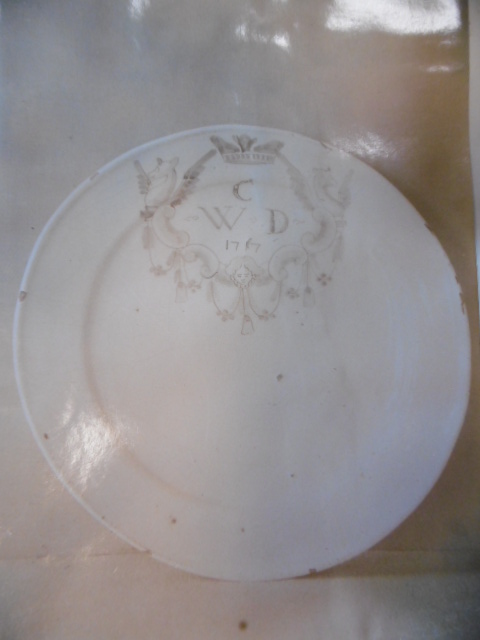 The first of the ‘Where is it Now?’ objects is this Lambeth (London) delftware plate, dated 1717, and with the initials ‘C W D’ painted on it. If you know where it is now do let us know by emailing antiquedealers@leeds.ac.uk