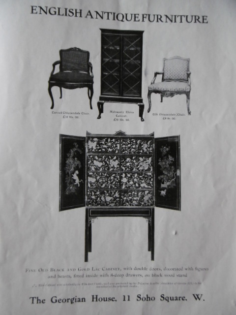 It must have been quite an extensive business; they state that they had ‘one of the largest stocks of English Antique Furniture in the country’ (but then, many dealers also suggested that at the time, and since). If we are to believe the information in the catalogue, they had 40 four-post beds in stock, all on show ‘in an historic Georgian House, decorated in the manner of that period.’