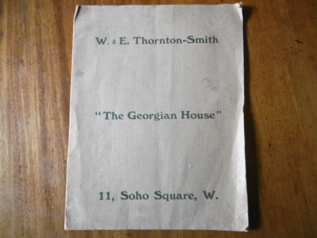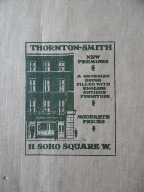 The catalogue is a type that was produced by many antique dealers during the early 20th century. A key comparison is the catalogue produced by Amyas Phillips, of the firm of Phillips of Hitchin, who also produced a catalogue of stock titled ‘The Georgian House’ (this one c.1920). The Thornton-Smith’s catalogue appears to date from c.1910, given the suggested information on the back of the catalogue (i.e. that Thornton-Smith had ‘New Premises’ at 11 Soho Square, London); they appeared to have moved to 11 Soho Square in c.1910.