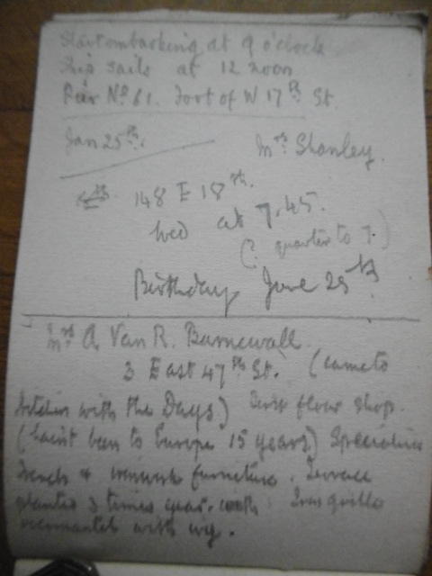 Whilst making an initial assessment of the material we came across a little notebook, detailing, it seems, a trip to New York in the period around 1920.