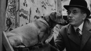 The exhibition includes a range of material associated with Capek (who was a collector of Oriental carpets himself) some photo stills from the film, showing ‘Amina’ the dog (not a poodle, as in the short story, but a dachshund) and the collector (the ‘Swindler’)’ in the movie, with the rare carpet in the background.