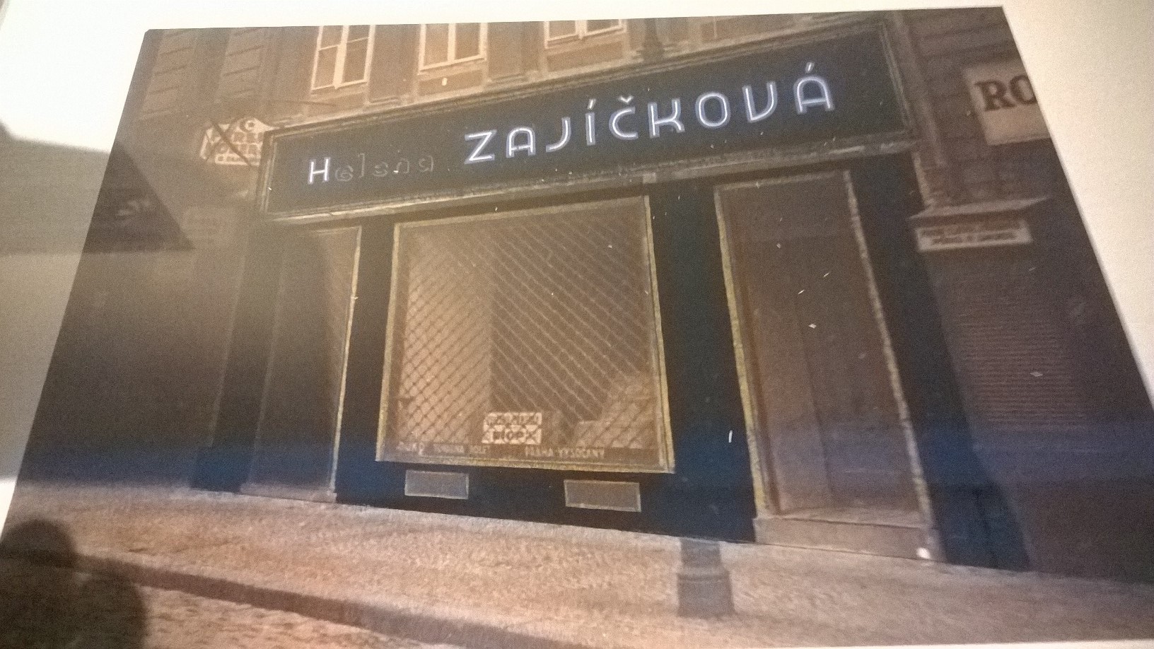 Hand-coloured photograph of a design for a neon sign for Helena Zajickova’s shop, by Neon CKD, 1933. Author’s photo.