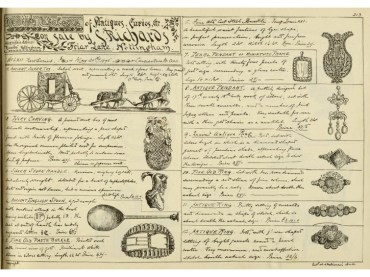 S. Richards, ‘Monthly Catalogue of Antiques, Curios etc for sale’ 1890-1899′. Photograph, copyright Mellors & Kirk, auctioneers, Nottingham, 2018.