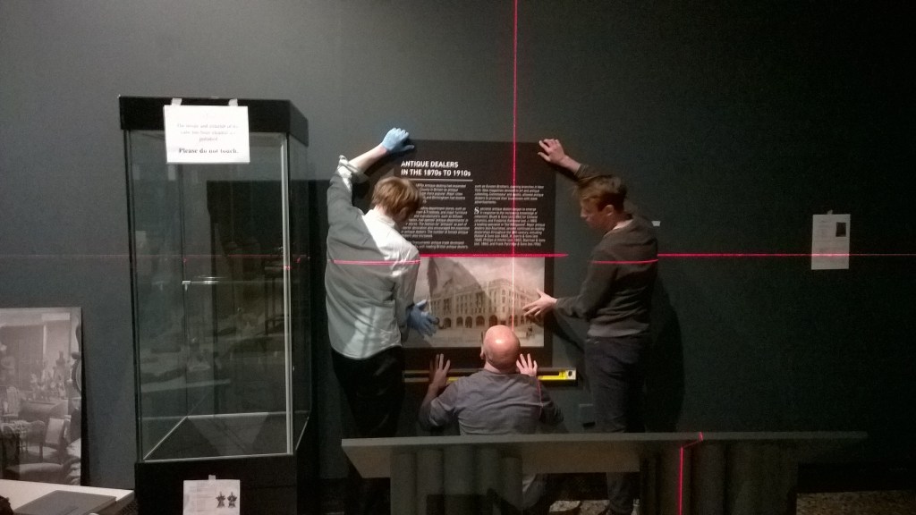 The SOLD! exhibition install has continued over the last couple of days – there’s only just over 1 week to go before SOLD! opens to the public on Saturday 26th January. There’s still lots to do of course, but George and the exhibitions team have been working long, long hours to ensure that the installation is all ready for the delivery of the exhibition loans from the Major, National Museums next week.