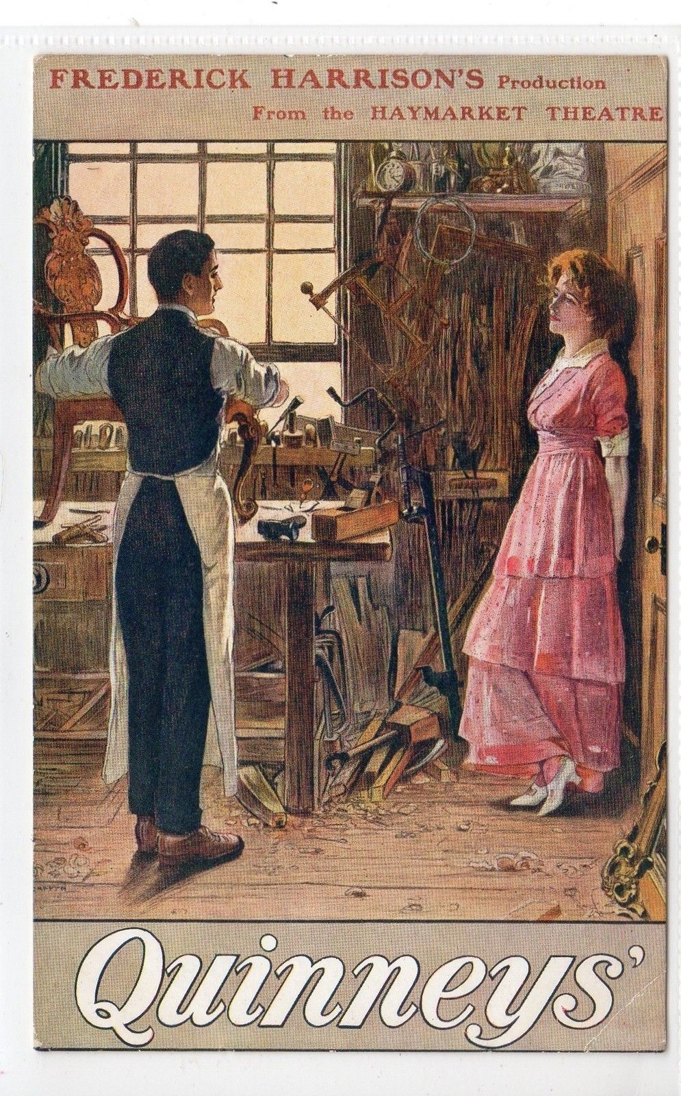 Quinneys was written as a novel in 1914 by the prolific writer Horace A. Vachell and is about the life and activities of the fictional antique dealer ‘Joseph Quinney’. The play ‘Quinneys’ followed in 1915 and was regularly performed during the period 1915 until the 1950s – it even made it to theatres in New York! The character of Joe Quinney was based on the real-life antique dealer Thomas Rohan, who was trading in Bournemouth and Southampton during the early 1900s until the 1930s – for more on Quinneys and Thomas Rohan do take a look at some of the previous posts in the antique dealers research blog.