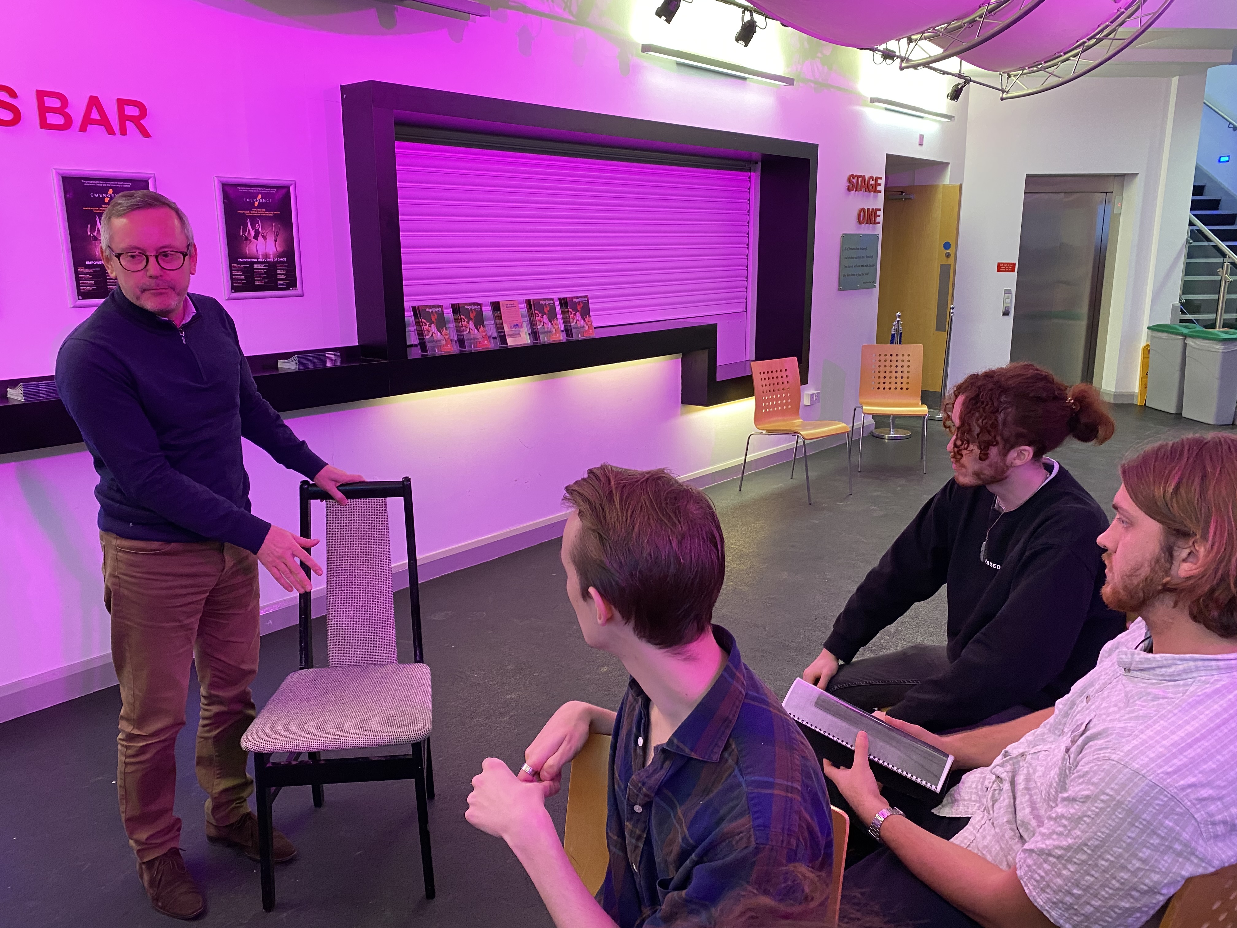 To that end, George got me to work with an imaginary ‘antique chair’, examining it as if I were an antique dealer, for the student actors – (that’s as much acting as I am going to do!) –