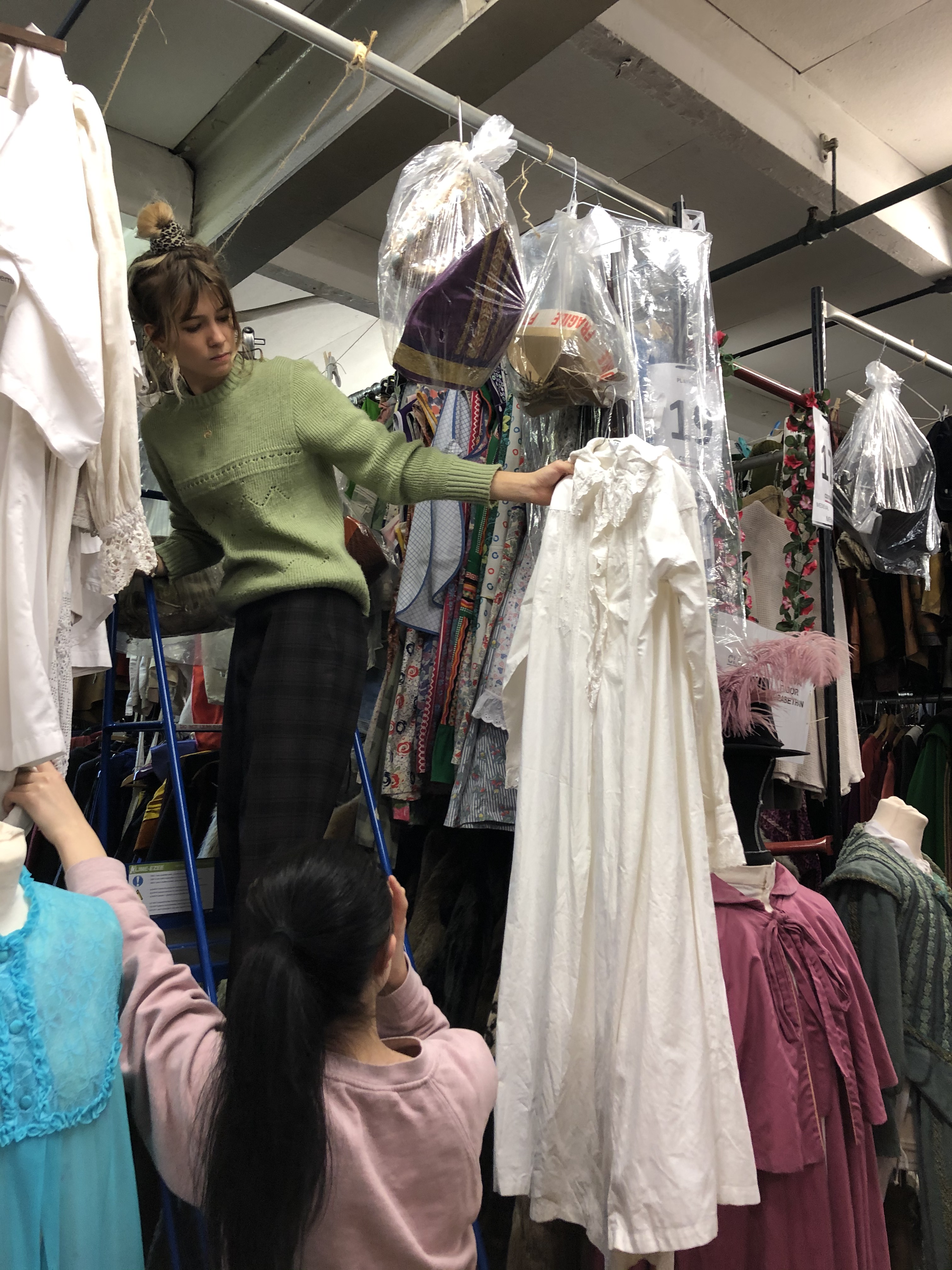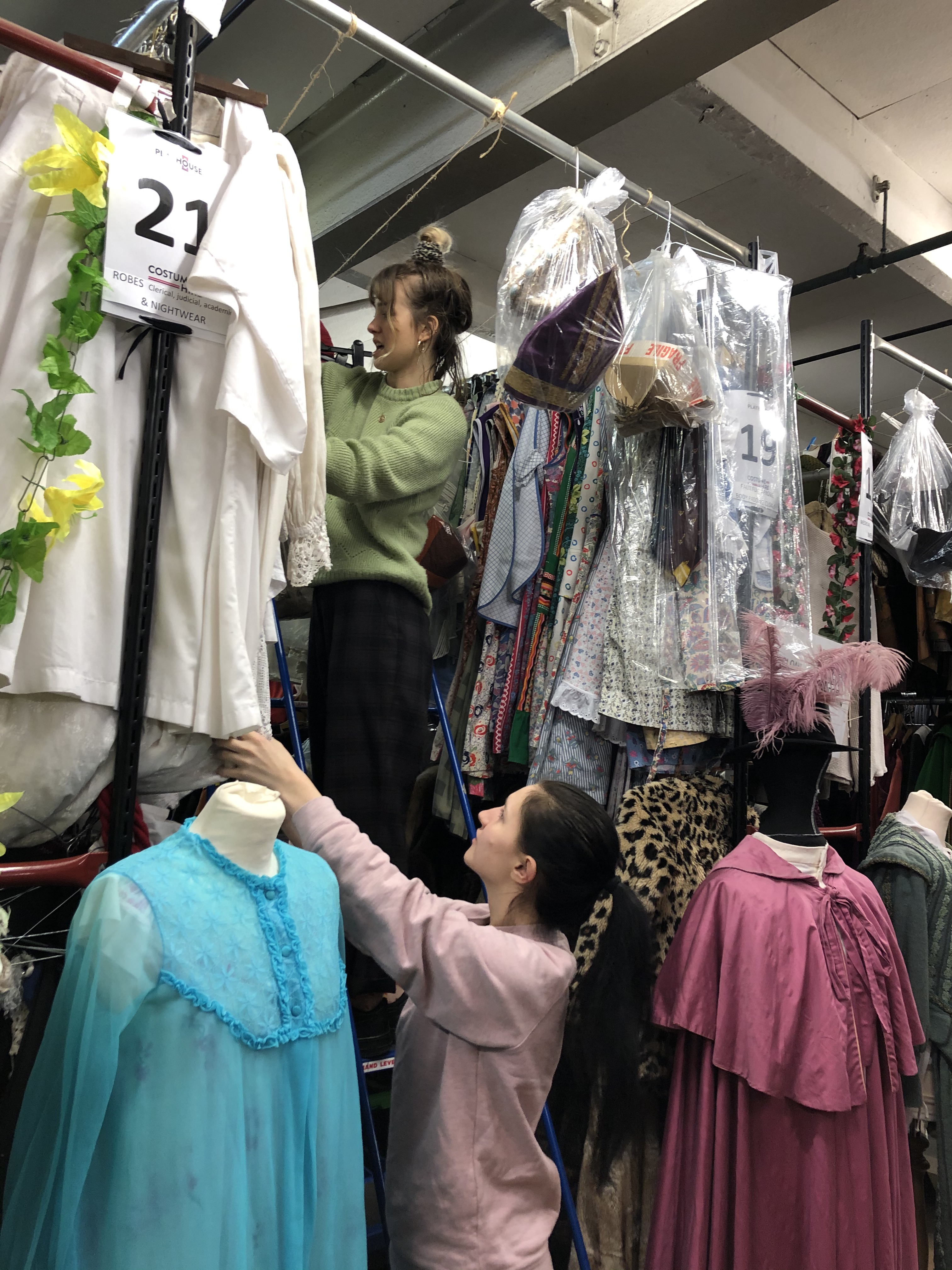 India and I spent all day in the costume store – it was exhausting (10.15am til 4.00pm!) but great fun! And we managed to find costumes for every character in the play. Here’s India, choosing a nightdress for ‘Mable Dredge’, with Steff, from the costume hire, who was such a fantastic help all day! All the costume we needed dates from the Edwardian period (the play is set in 1914), and there are brilliant resources at the Leeds Playhouse Costume Hire.