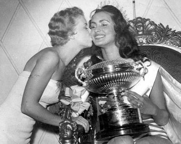 That year, the fifth edition of the now highly contentious and outdated competition, Miss Venezuela, Susanna Duijm, won the competition; here she is, holding the trophy made by Jay, Richard Attenborough & Co Ltd.