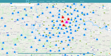 Antique Dealers Map showing dealers in Britain 1900-2000. Image, Antique Dealers project, University of Leeds.