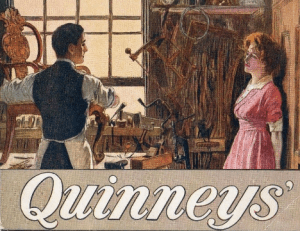 As a prelude to our restaging of the play ‘Quinneys’, I thought it might be interesting to post a blog entry on the relationship between antique dealing and film and theatre props and scene sets, given that we have many generous promises of the loan of antiques for the props for the future set of the play Quinneys (there will be more on that in future blog posts, so do keep popping back!).