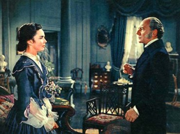 The firm of Stair & Company, of London and New York, established in 1911 as Stair & Andrew, also appear to have been used regularly by film companies for the hire of film props. In 1956, for example, Stair & Co. hired antique furniture and many other antique objects for the set of the film The Barratts of Wimpole Street, directed by Sidney Franklin and starring John Gielgud and Jennifer Jones. The film was made in England and was released in January 1957. Here’s the film poster, and a film still, in which one can just detect an 18th century armchair, in the Chinese taste, in the centre background, and many other 18th century and 19th century objects also populate the scene – perhaps some of these were on hire from Stair & Co.?