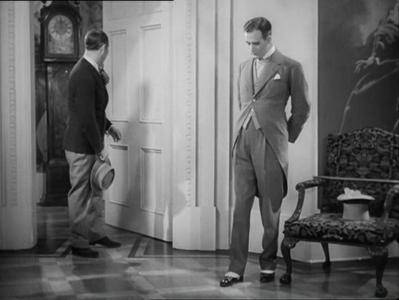 And here (below), in another film still from The Beloved Vagabond, there is another mid-18th century open armchair, to the left, together with a mid-18th century stool (just behind the man, centre of the still) and an 18th century sidetable behind, all typical of M. Harris & Sons stock of the period.