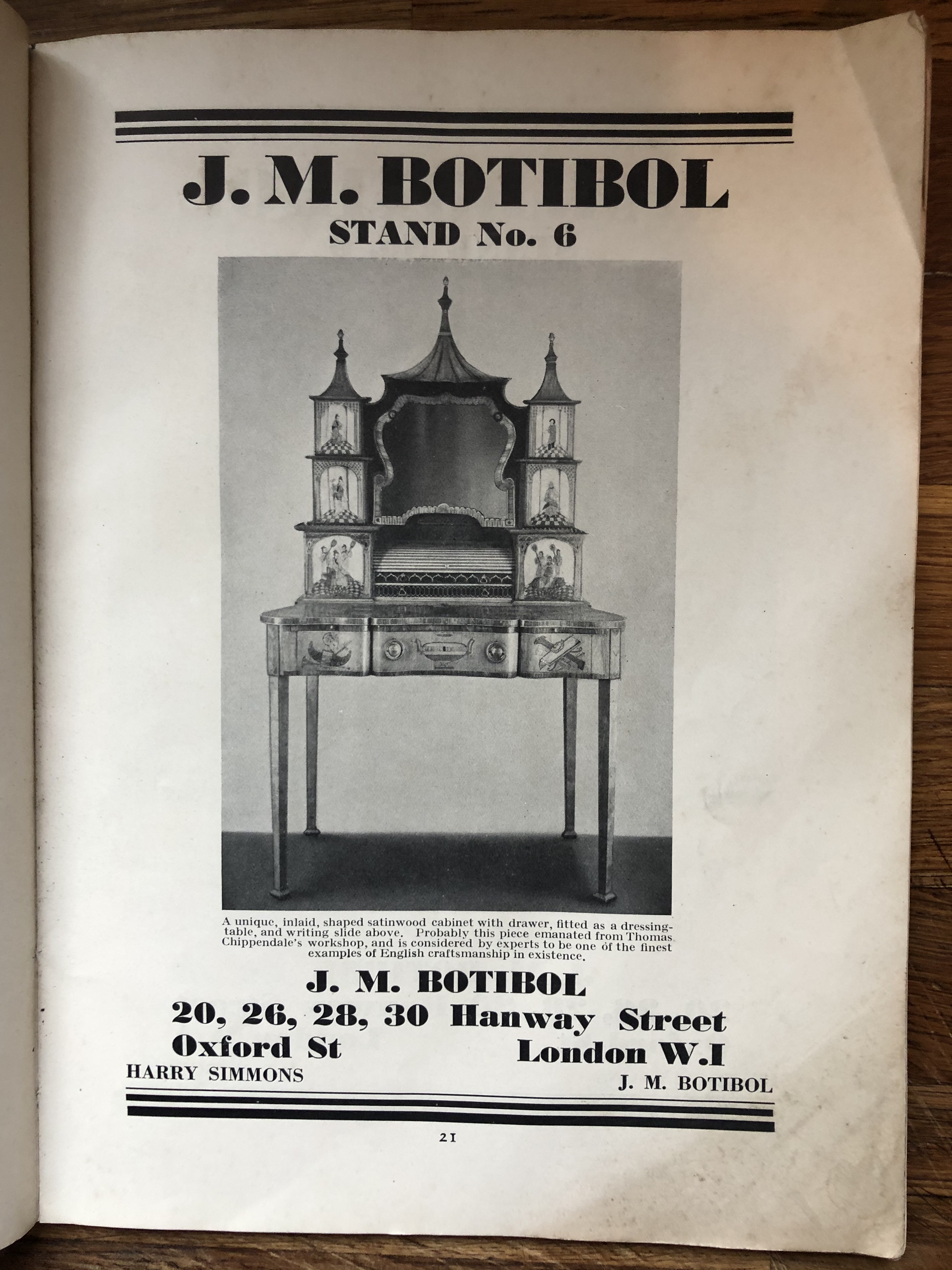 Advertisement for J.M. Botibol from The Antique Dealers’ Fair handbook 1935. Photograph, Antiques Dealers Research Project, University of Leeds.