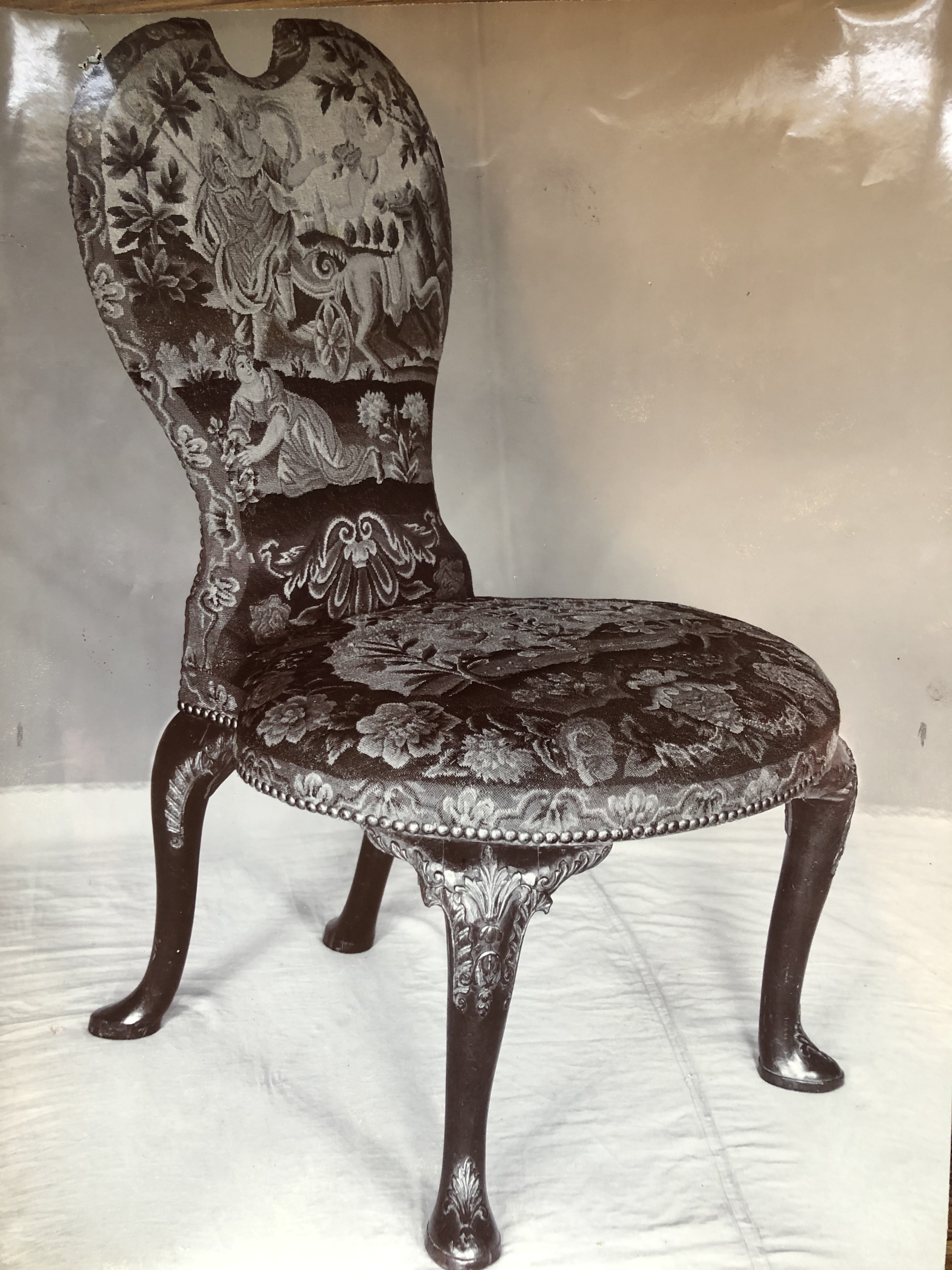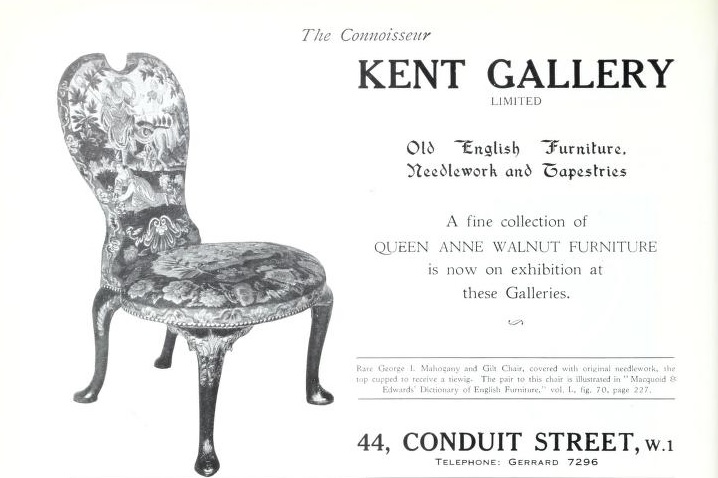 The verso of the photograph of the ‘George I’ chair has a Kent Gallery stamp. Thanks to Chris Coles, who kindly send us a photograph of the advertisement in The Connoisseur in 1927 from Kent Gallery, which illustrates the chair and which helps us date the Kent Gallery albums to c.1920-1930.