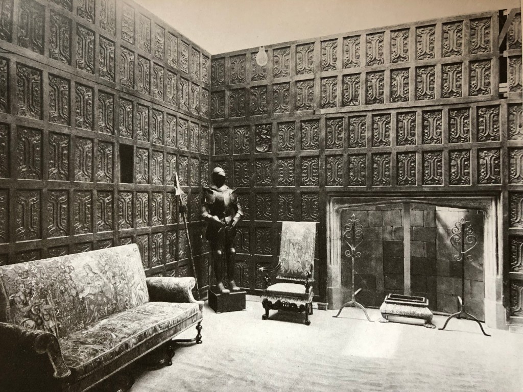 ‘Old oak’ was indeed amongst the most popular tastes in the opening decades of the 20th century, with many specialist dealers emerging in the market. There was also a thriving trade in the sale of ‘old oak rooms’, recycling 16th and 17th century panelling and fittings into new old-style properties as collectors and furnishers wanted the ‘period room’ look. Dealers such as Lenygon & Morant, Frederick Litchfield, and perhaps most famously, Charles Roberson, did a brisk trade in the sale of period panelling and period rooms. Below is a photograph of a ‘Gothic Oak Room from Boughton Malherbe Manor House, Kent’, from Roberson’s sales catalogue, volume II of three volumes, also, like Shenker’s catalogue, dating from the early 1920s.