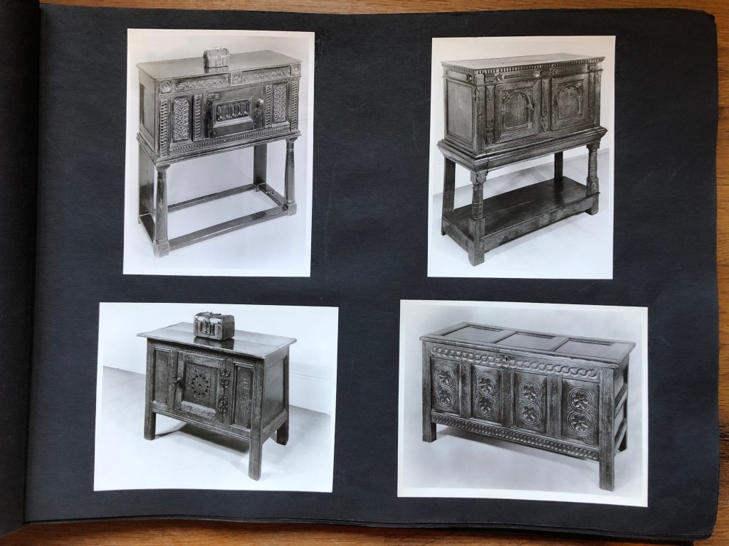 The collections of antique dealer ephemera and archives gathered as part of the on-going research into the history of the antique trade in Britain continues apace. The latest additions are two unique photograph albums of stock of the well-known dealer in antique oak furniture and early objects, Mary Bellis (c.1896-1897). Bellis opened her first antique shop in Bournemouth in 1943, and the photograph albums appear to date from an early period in the history of Mary Bellis Antiques.