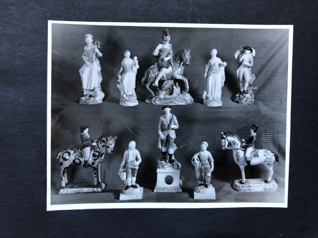 Album no.2 also includes dozens of photographs illustrating the wide range of trading stock; paintings, sculpture, textiles, metalwork, stained glass and ceramics – including (in the second photograph below) a collection of 18th century English pottery figures.