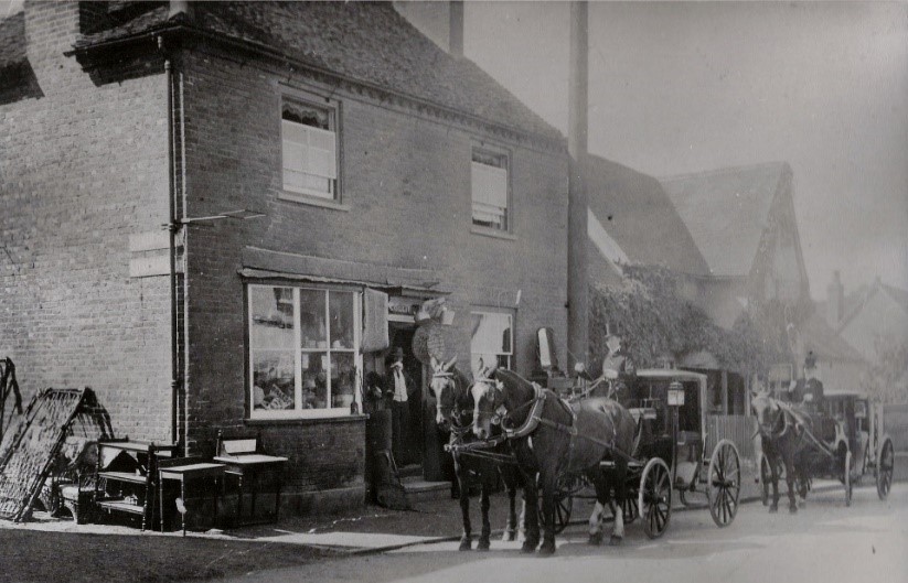 Charlie entered into partnership with his brother Fred in 1911, repairing and selling furniture from a small yard behind the Railway Hotel in Wheathampstead, before moving the business to 12 High Street, Wheathampstead (see photograph BELOW) . When money was tight, the brothers acted as cabbies, hiring horses from Tattershalls, the well-known auctioneers of horses. During the First World War their sisters looked after the business. After the War the brothers returned safely home to Wheathampstead from Europe and the Middle East, taking up the running of the business again.