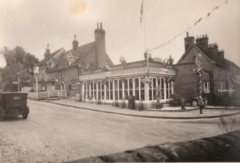 In 1926, Fred Collins bought 54 High Street, Wheathampstead, which consisted of a cottage and a small site next door; after which, Fred paid £12 for a Winter Garden from a demolished local country house, which was re-erected on the High Street site in 1931, creating the F.G. & C. Collins antique shop (see photograph BELOW).