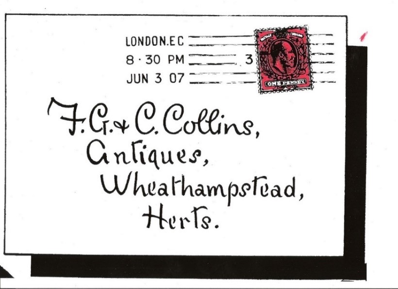 This month’s blog post is one of our occasional series of invited contributors to the Antique Dealer Research Blog. We have a really fascinating blog on the history of the well-known antique dealers F.G. & C. Collins, of Wheathampstead, Hertfordshire, composed by Anne Atton, the grand-daughter of one of the founders of the business. We are very grateful to Anne for sharing her memories and research with the antique dealer research project – Thank You Anne!