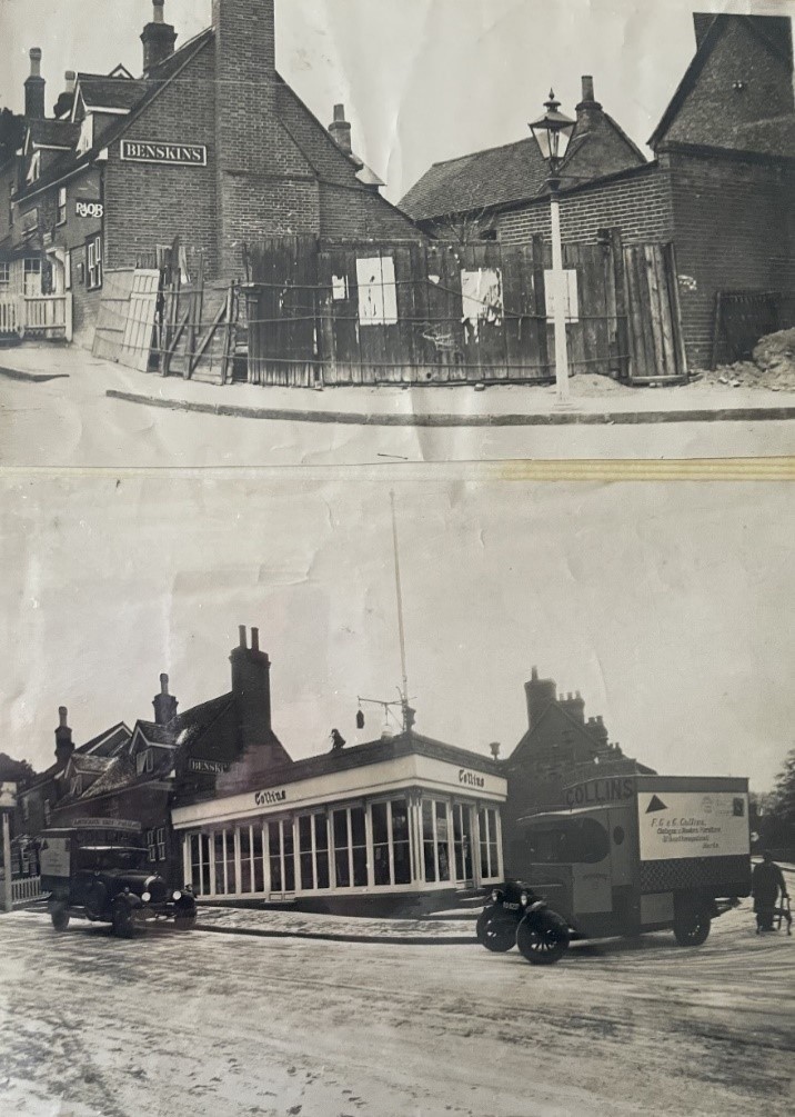 In 1930, Fred Collins rented outbuildings from the Town Farm, opposite the shop. These were later used for the storage of furniture of wealthy customers protecting their valuables during the London Blitz during the Second World War.