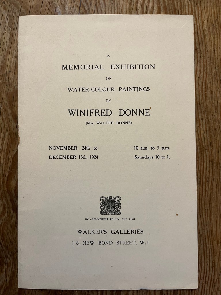 Winifred Donne maybe a relatively forgotten female artist today, but at the time of her death in 1922, (she died tragically young, aged only 42) she was famous enough for Walker’s Galleries, in New Bond Street, London, no less, to organise a Memorial Exhibition of her work in Nov-Dec 1924.