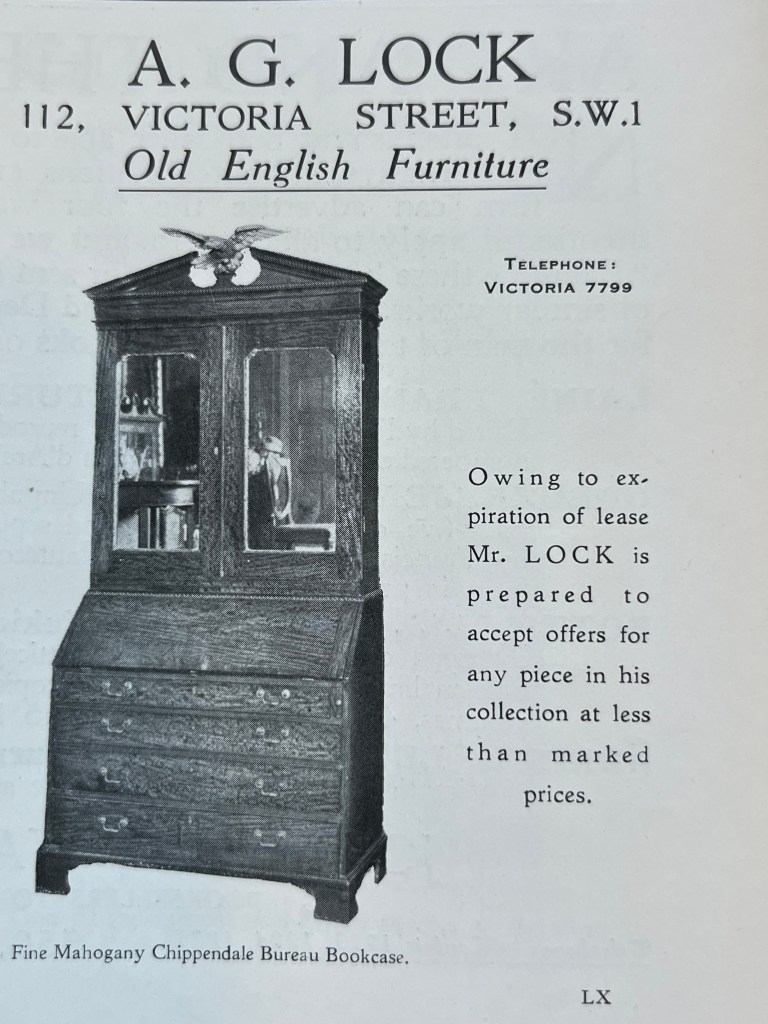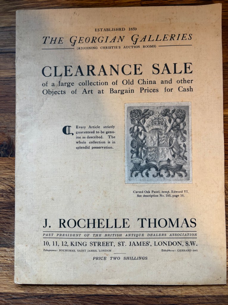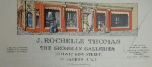 J. Rochelle Thomas was a very well established antique dealer by the 1920s; the business would later expand to New York selling to many wealthy American collectors, including scores of English antiques to Henry Francis du Pont (1880-1969); du Pont’s collections of American antiques remain at Winterthur Museum in Delaware, USA. Indeed, here’s an image of J. Rochelle Thomas’ London shop from a letter sent to du Pont in 1931, which was right next door to Christie’s King Street auction rooms. The premises occupied by Rochelle Thomas are now part of Christie’s auction rooms.