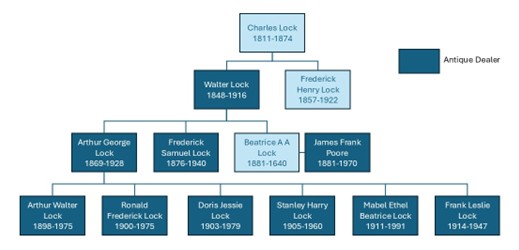 The Rochelle Thomas business began in 1859 (they celebrated a centenary year in 1959, according to some of their business letterheads) in Birmingham in the UK. It was started by Henry Thomas, who appears to have been born in about 1815 – the 1861 Census records Henry as aged 48 and working as an ‘ironmonger’ in Birmingham; by 1871 he was working as a ‘cutler’. His son, Joseph Rochelle Thomas (the man in the photograph) was born in 1865 and by the 1890s was described in the Census (1891) as ‘Dealer in Old Bank Notes’; by the 1911 Census Rochelle Thomas was describing himself as ‘Dealer in Pictures, Furniture and Porcelain’, and by 1921 he was ‘Dealer in Works of Art’. His sons, Victor and Alfred, both started working for their father’s antique dealing business from an early age and ran the business following Joseph Rochelle Thomas’ death in 1938. The business was also known as ‘The Georgian Galleries’. J. Rochelle Thomas was elected first President of the British Antique Dealers’ Association in 1918 as well as being a member of several international dealer associations (in Paris, Brussels and New York); so he was a highly respected dealer in the opening decades of the 20th century.
