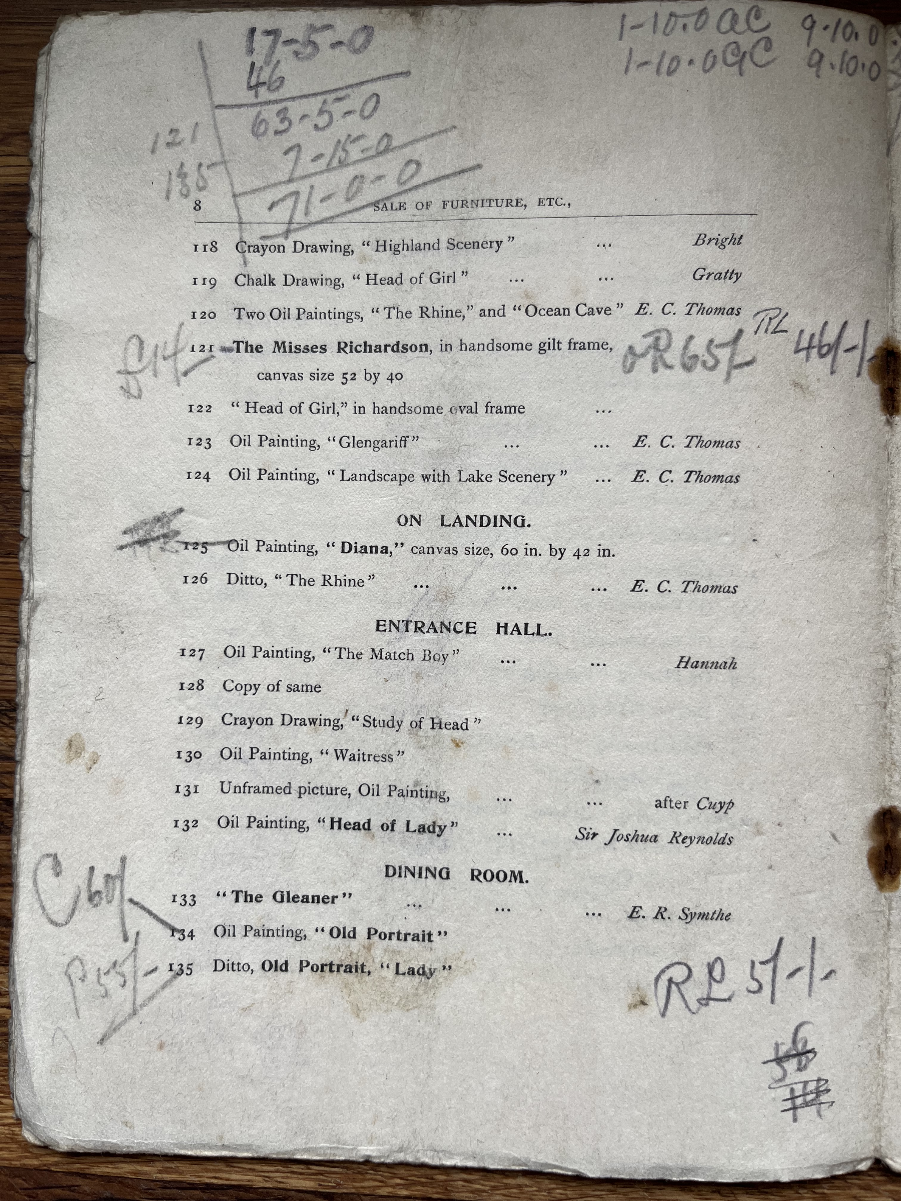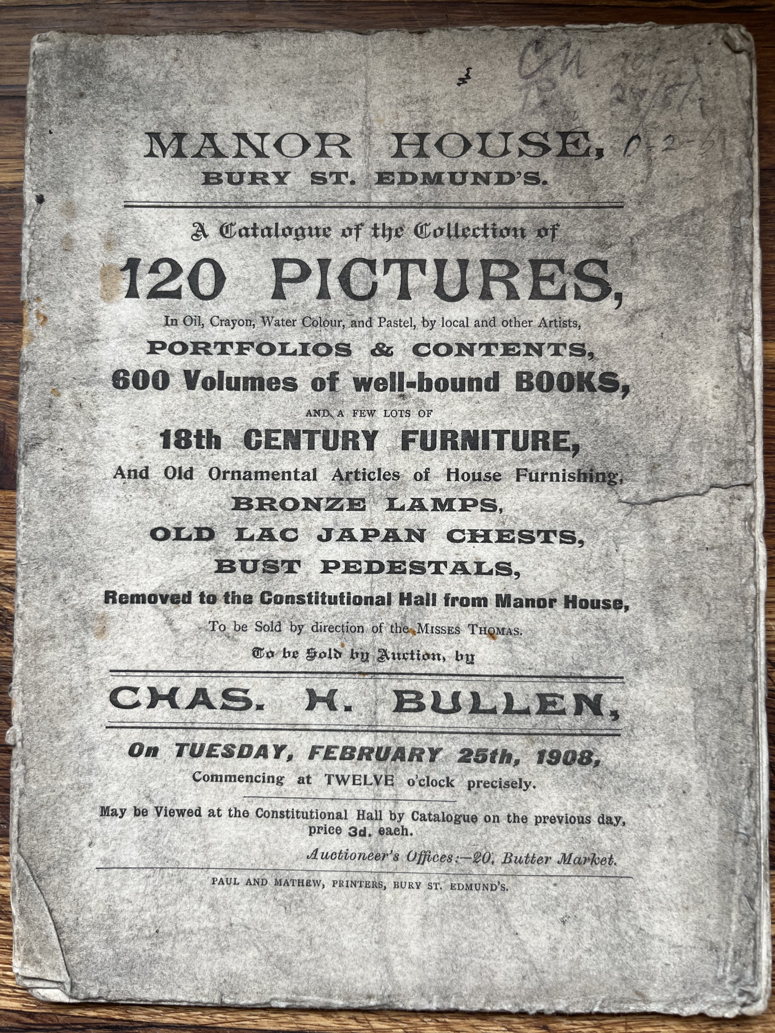 Coincidently a while ago I acquired an old sales catalogue produced by J. Rochelle Thomas in 1923 which also contains several items for sale with significant historical associations. The catalogue was issued to facilitate a ‘Clearance Sale’ that Rochelle Thomas undertook in 1923 as part of a refurbishment of his shop in King Street, St. James’s. As the catalogue states, ‘To my customers, as I am about to make extensive alterations to my premises I find it necessary to hold a Clearance Sale of the greater portion of my stock, and I am doing so at 50 per cent. in every case below the original marked prices in order to realise promptly.’ Here’s the cover of the catalogue: