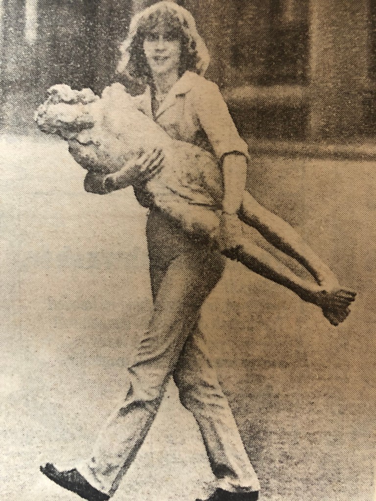 Charles Morse offered the sculpture for sale at the Northern Antique Dealers’ Fair in Harrogate in 1979, for the sum of £3,000. One does not get a sense of the size of the sculpture, until one sees Charlotte (then aged 22) carrying the sculpture into the fair.
