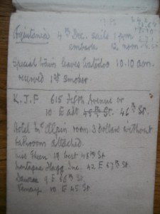 Whilst making an initial assessment of the material we came across a little notebook, detailing, it seems, a trip to New York in the period around 1920.