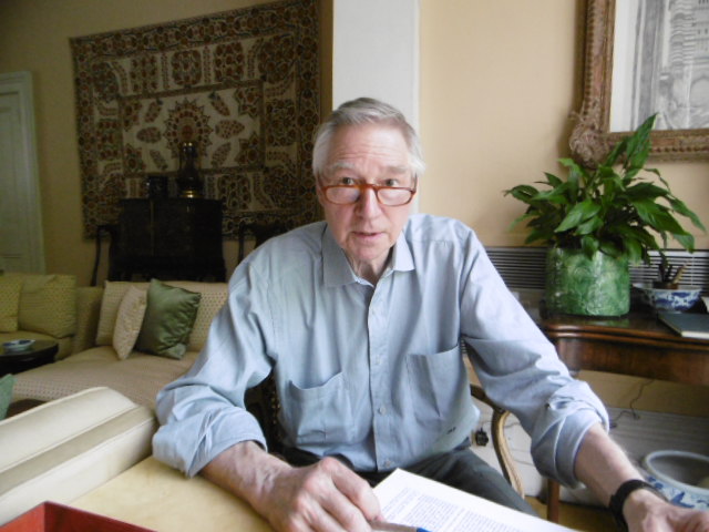 Nicholas Somers, at his home in London. Photo Antique Dealer project, University of Leeds, 2016.