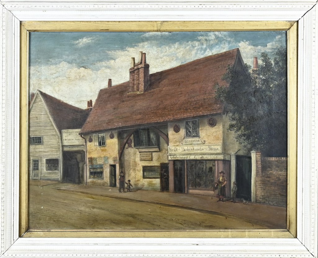 But who were Parsons & Sons and Cubitt? Parsons & Sons were antique dealers who by the 1920s were trading in the then ultra-fashionable Brompton Road, London. Cubitt & Sons were also well-known antique dealers, trading in Norwich and London – in fact at the time of the auction sale in 1908 they occupied the building next door to what would become John Wordingham’s shop in Tombland in Norwich, the famous ‘Hercules House’ (see the building below – you can just see what would become Wordingham’s shop in the 1930s to the left). George Cubitt also operated as an auctioneer in the same period, also trading from Hercules House (also known as ‘Hercules and Samson House’); in fact George Cubitt took the famous auction at Walsingham Abbey, Norfolk in September 1916.