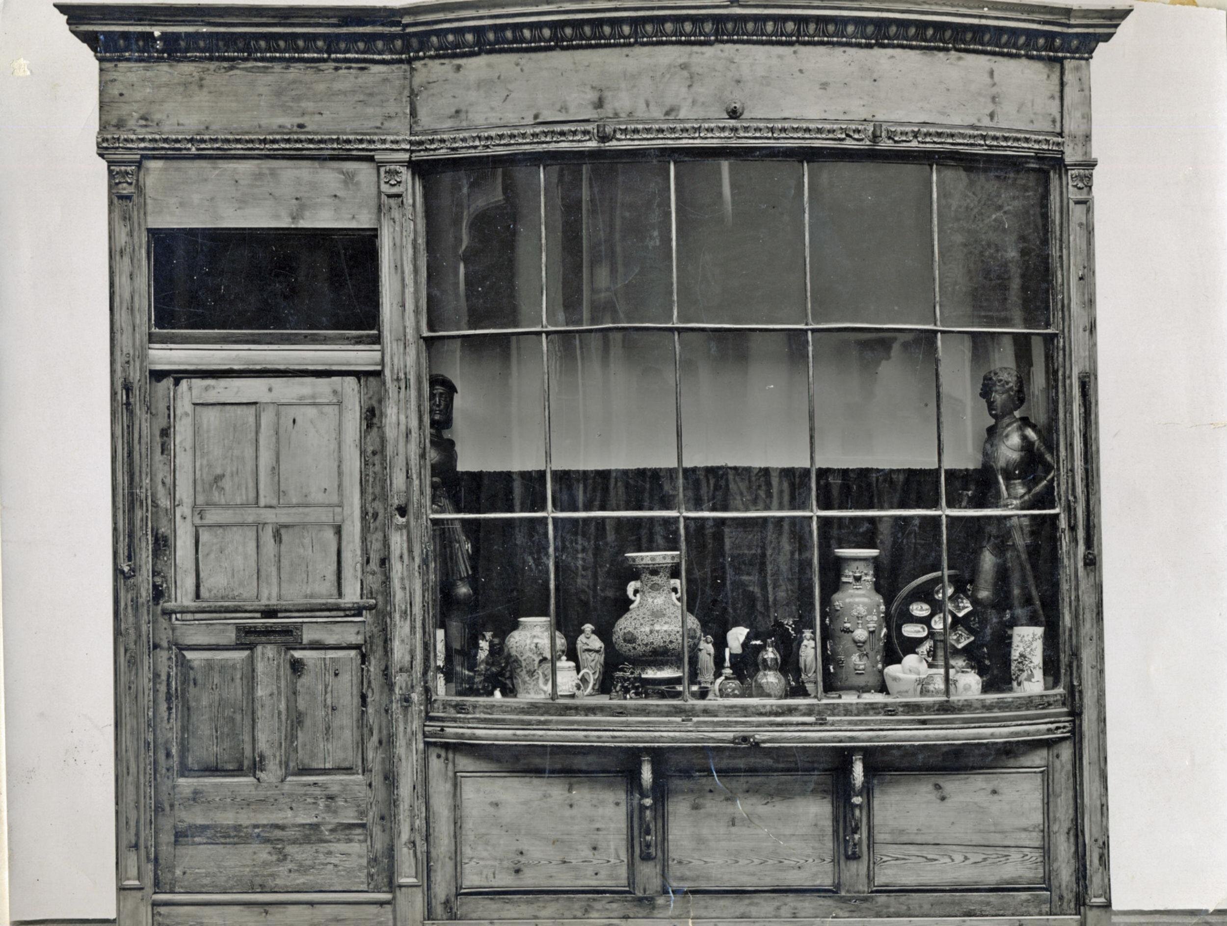 Levine tends to write out dealer names in full next to the Lot numbers and there are some familiar dealers listed as buyers – Rixon, Lee, Mannheim, Cohen etc. The buyer of Lot 575 is noted as ‘JW’, listed by Levine as the buyer of many Lots at the Thornham Hall auction. ‘JW’ is obviously someone familiar to Levine and is almost certainly the dealer John Wordingham. Wordingham established his antique dealing business in 1908 and was a member of the BADA. He had been a neighbour of Levine at 74 Prince of Wales Road in the 1920s, but by the 1930s (at the time of the auction) he was trading from the famous 16th century ‘Augustine Stewards House’, Tombland, Norwich. Below is a photograph of Wordingham’s shop in 1935 just a couple of years before the Thornham Hall auction.